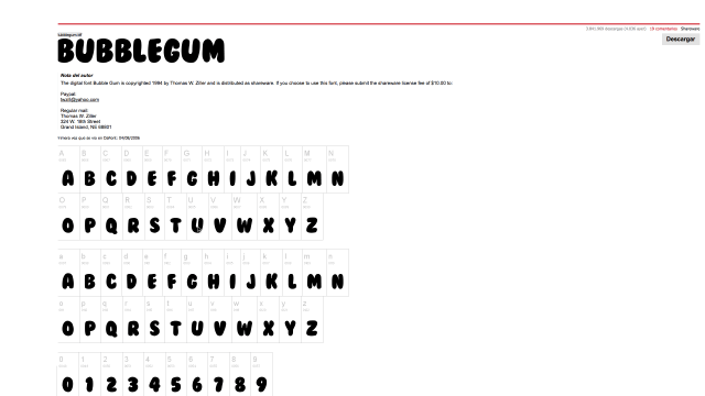 Las fuentes presentadas en este sitio web son propiedad de sus autores, y son freeware, shareware, demos o dominio público. La licencia mencionada encima del botón de descarga es sólo una indicación. Por favor, mira en los ficheros «Readme» en los zip o comprueba lo que se indica en la web del autor para los detalles, y contacta con él/ella en caso de duda. Si no hay autor/licencia indicados, es porque no tenemos la información, lo que no significa que sea gratis.