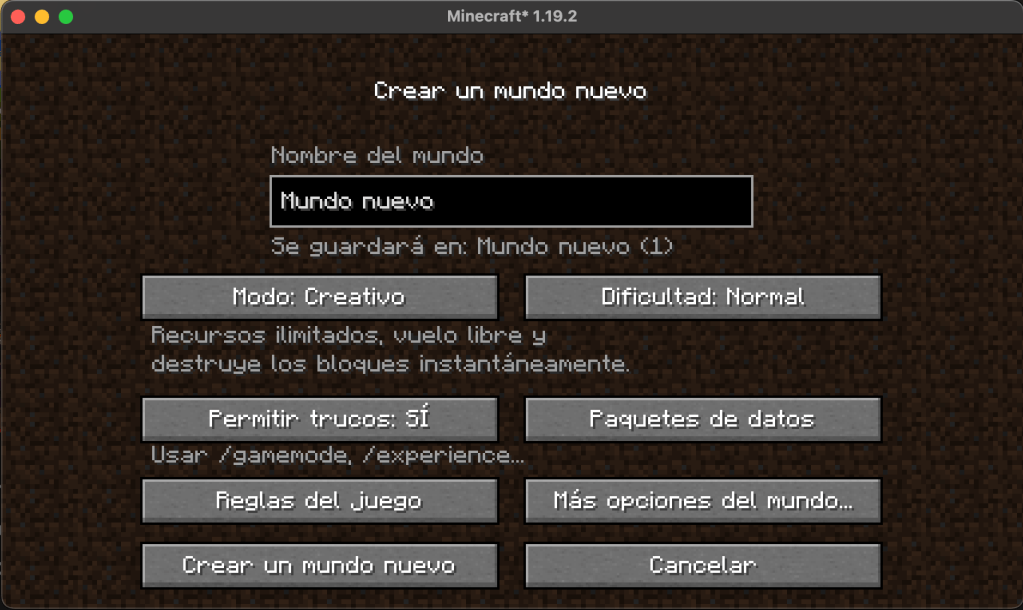 ¡Haz clic en «Crear nuevo mundo» y comienza tu aventura!